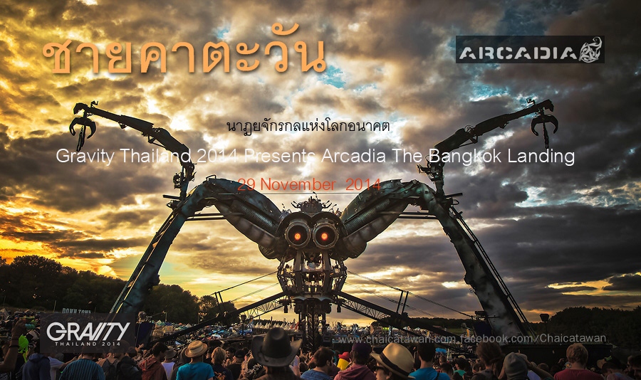 Gravity Thailand 2014 คือ มิติใหม่ของปรากฏการณ์ทางดนตรีในประเทศไทย นำเสนอให้ผู้ชมชาวไทยและนักท่องเที่ยวจากทั่วโลกได้พบกับ ARCADIA – THE BANGKOK LANDING สุดยอดโชว์ดนตรีเต้นรำอลังการตระการตา