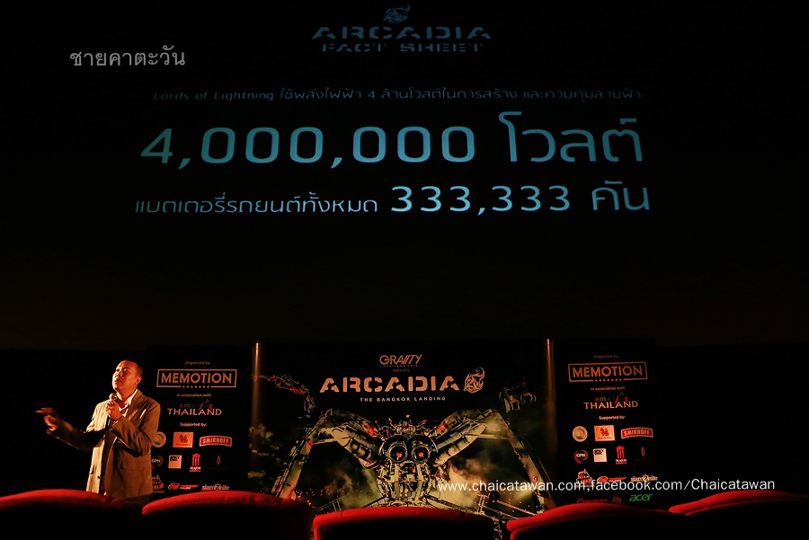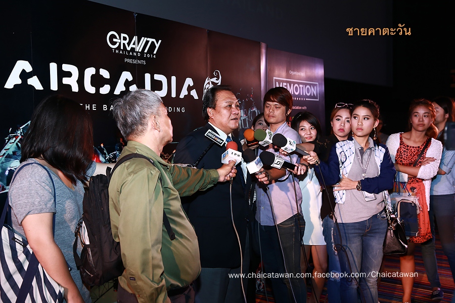 หลังจากนั้นเป็นหน้าที่ของ “ดอม โชติวนิช” ผู้อำนวยการฝ่ายสร้างสรรค์ บริษัท มีโมชั่น จำกัด ได้ให้รายละเอียดเกี่ยวกับ “กราวิตี้ ไทยแลนด์ .2014 พรีเซ้นท์ อาร์เคเดีย เดอะ แบงค็อก แลนดิ้ง” (Gravity Thailand 2014 Presents Arcadia The Bangkok Landing)