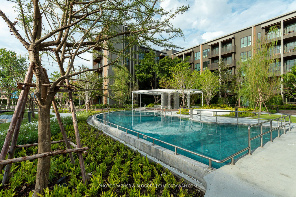 สระว่ายน้ำกลางแจ้งพร้อมมุมพักผ่อนและสวนหย่อม